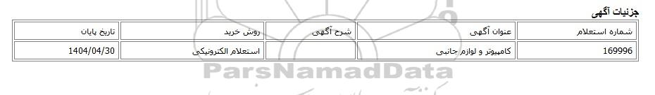 169996کامپیوتر و لوازم جانبیاستعلام الکترونیکی1404/04/30