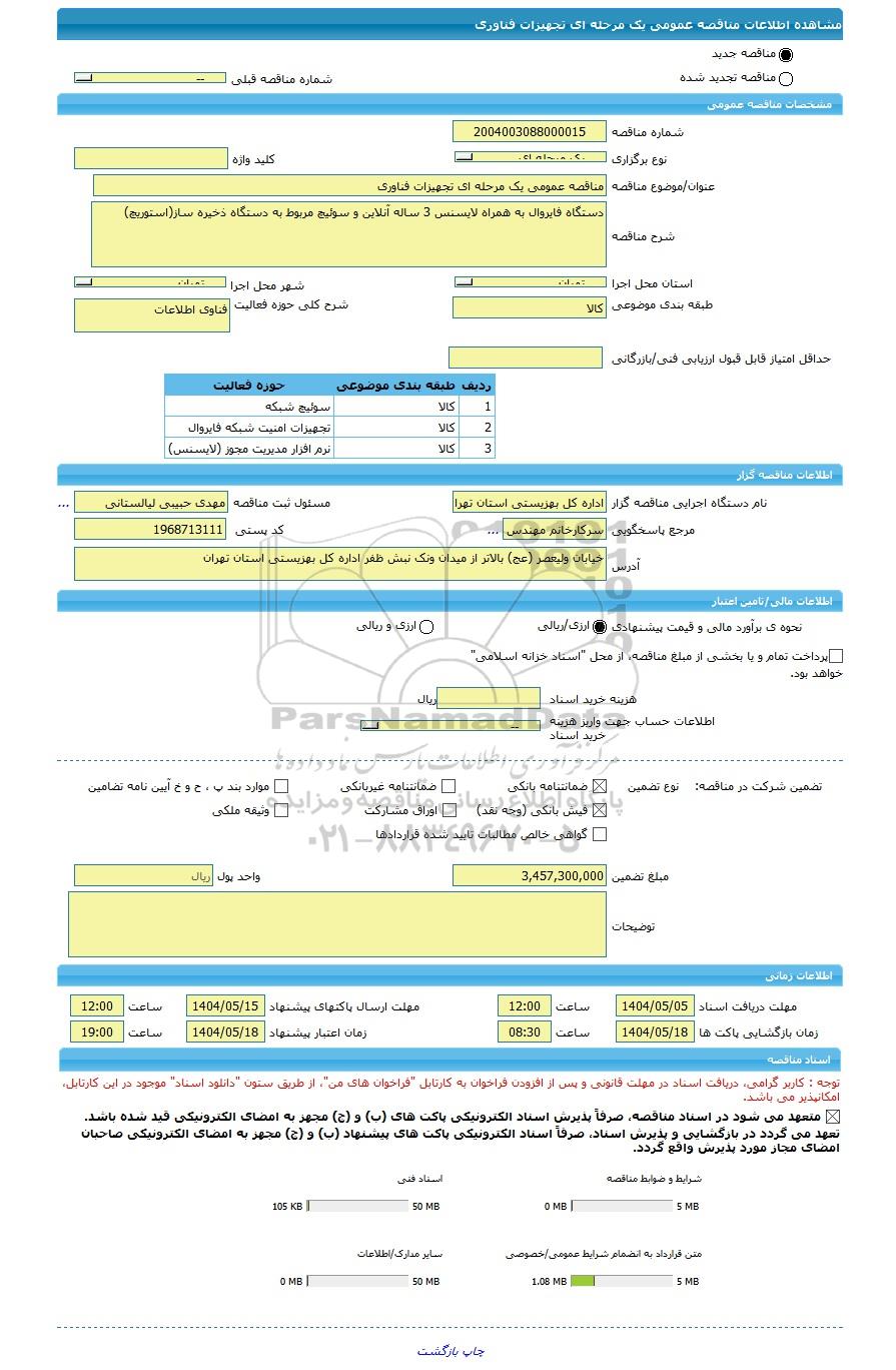 | شماره مناقصه | 2004003088000015 | ||||||||||||||