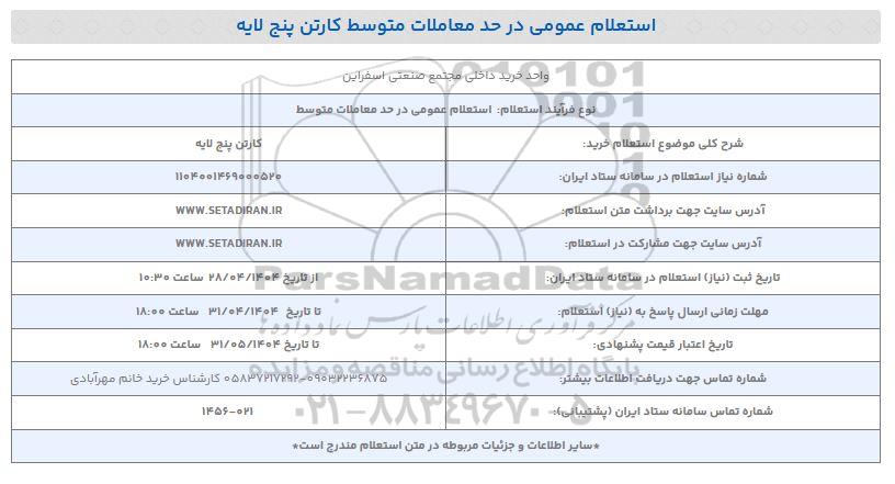 استعلام عمومی در حد معاملات متوسط کارتن پنج لایه