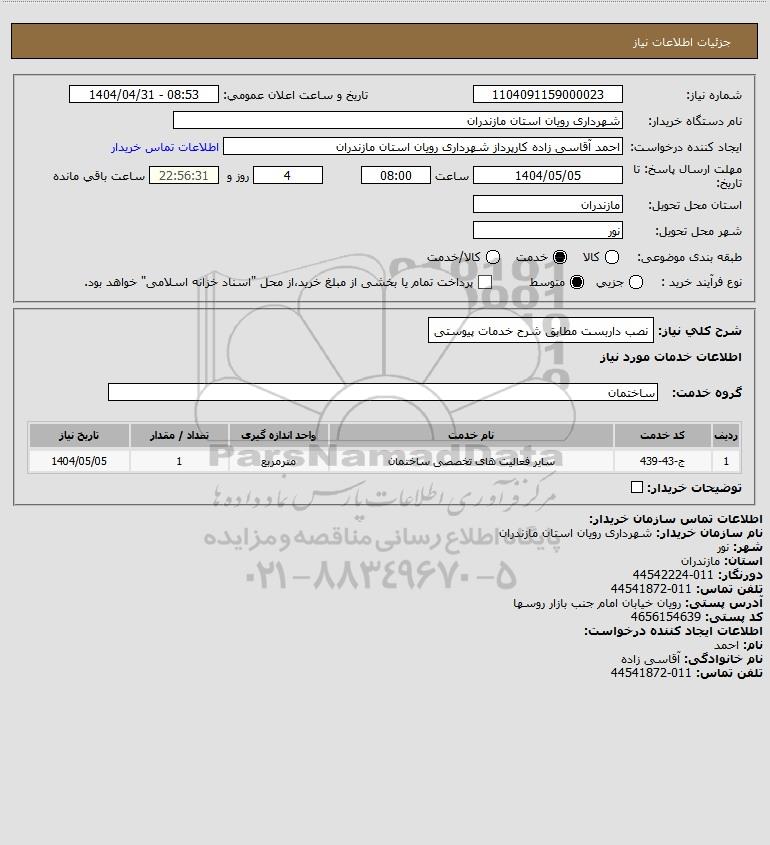 استعلام نصب داربست مطابق شرح خدمات پیوستی, استعلام نصب داربست مطابق شرح خدمات پیوستی