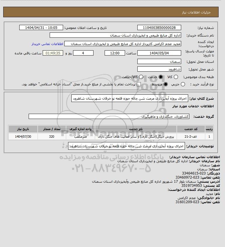 استعلام اجرای پروژه آبخیزداری مرمت شن چاله حوزه قلعه نو خرقان شهرستان شاهرود, استعلام اجرای پروژه آبخیزداری مرمت شن چاله حوزه قلعه نو خرقان شهرستان شاهرود