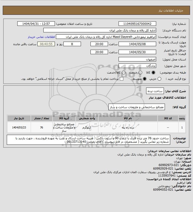 1 -- نرده راه پله کیلوگرم مصالح ساختمانی و ملزومات ساخت و ساز 76 1404/05/23
