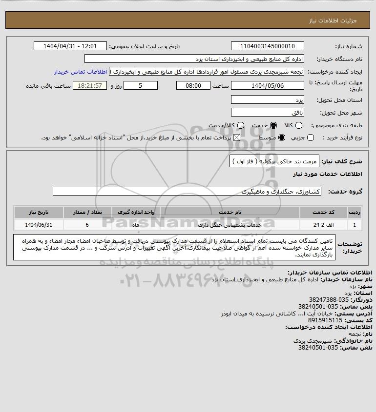 نام دستگاه خریدار:اداره کل منابع طبیعی و ابخیزداری استان یزد
