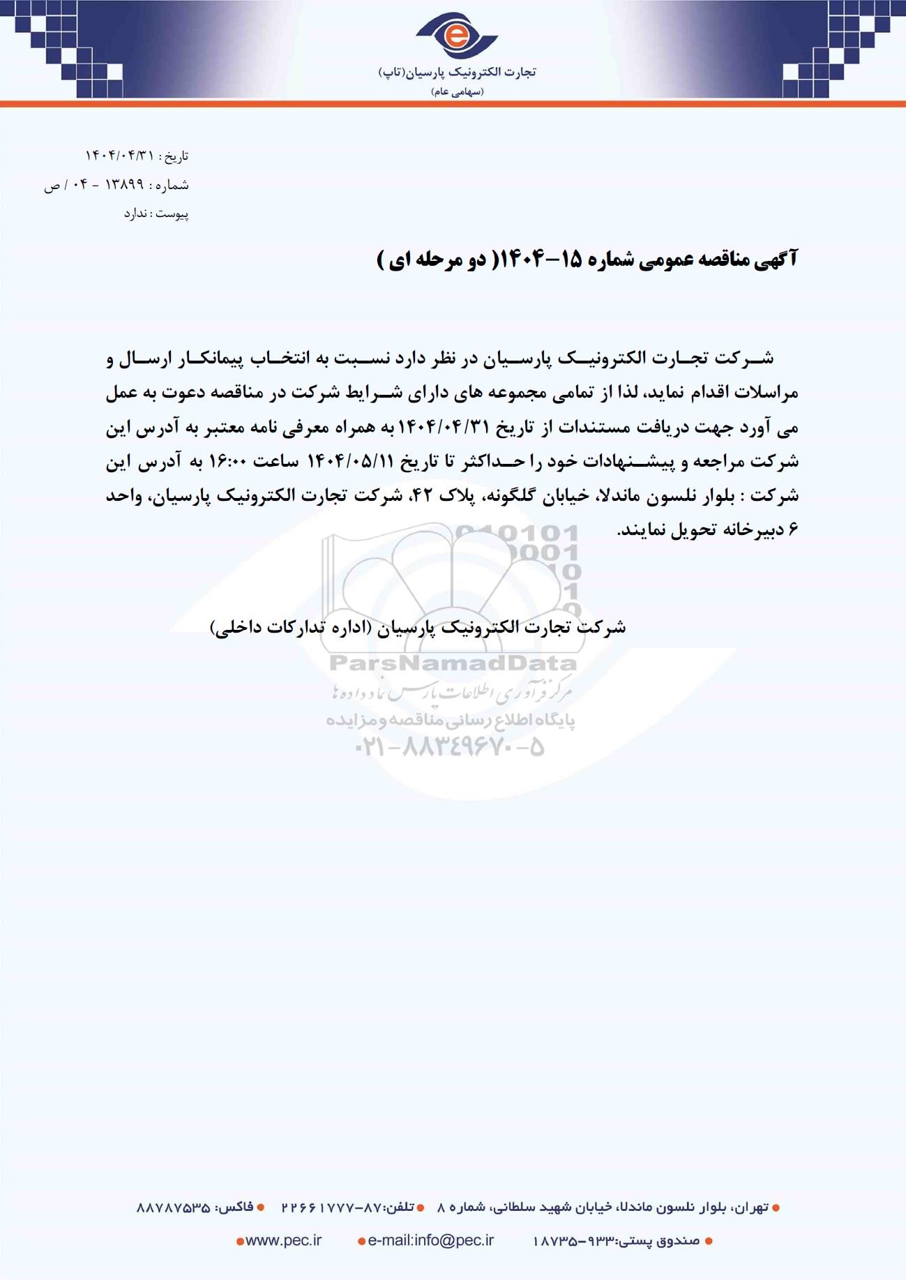 آگهی مناقصه عمومی شماره 15 - 1404 (دو مرحله ای)
