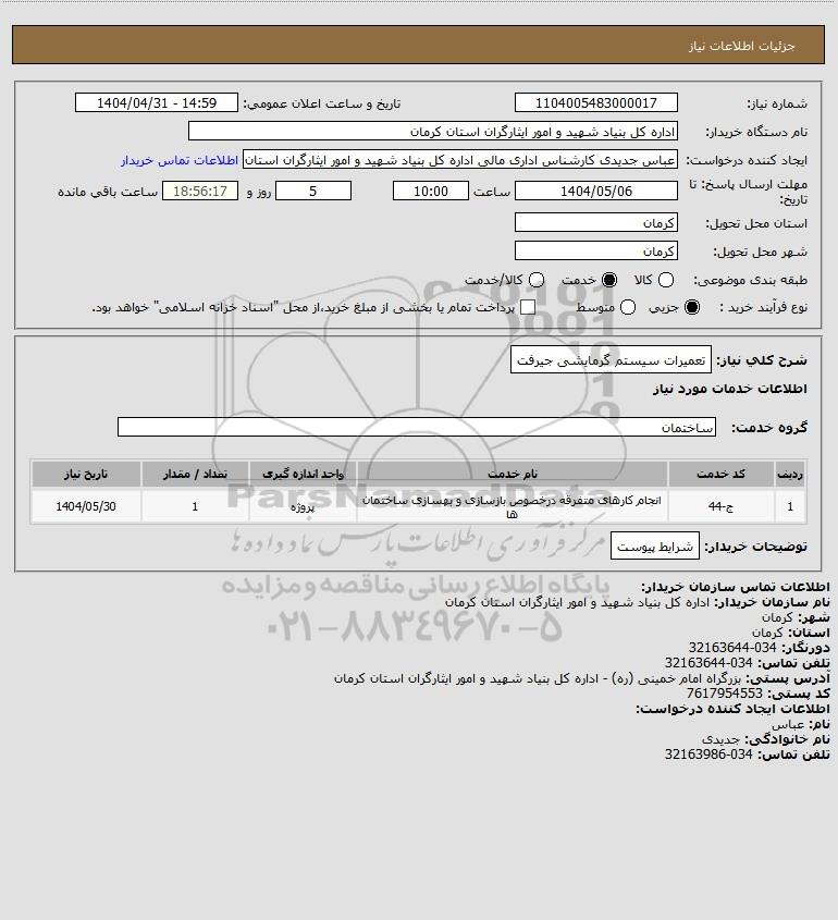استعلام تعمیرات سیستم گرمایشی جیرفت, استعلام تعمیرات سیستم گرمایشی جیرفت