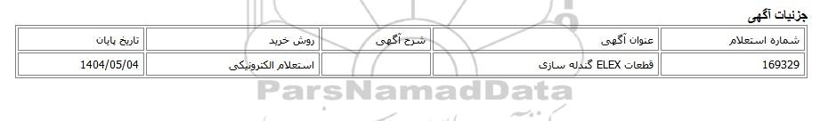 169329قطعات ELEX گندله سازیاستعلام الکترونیکی1404/05/04
