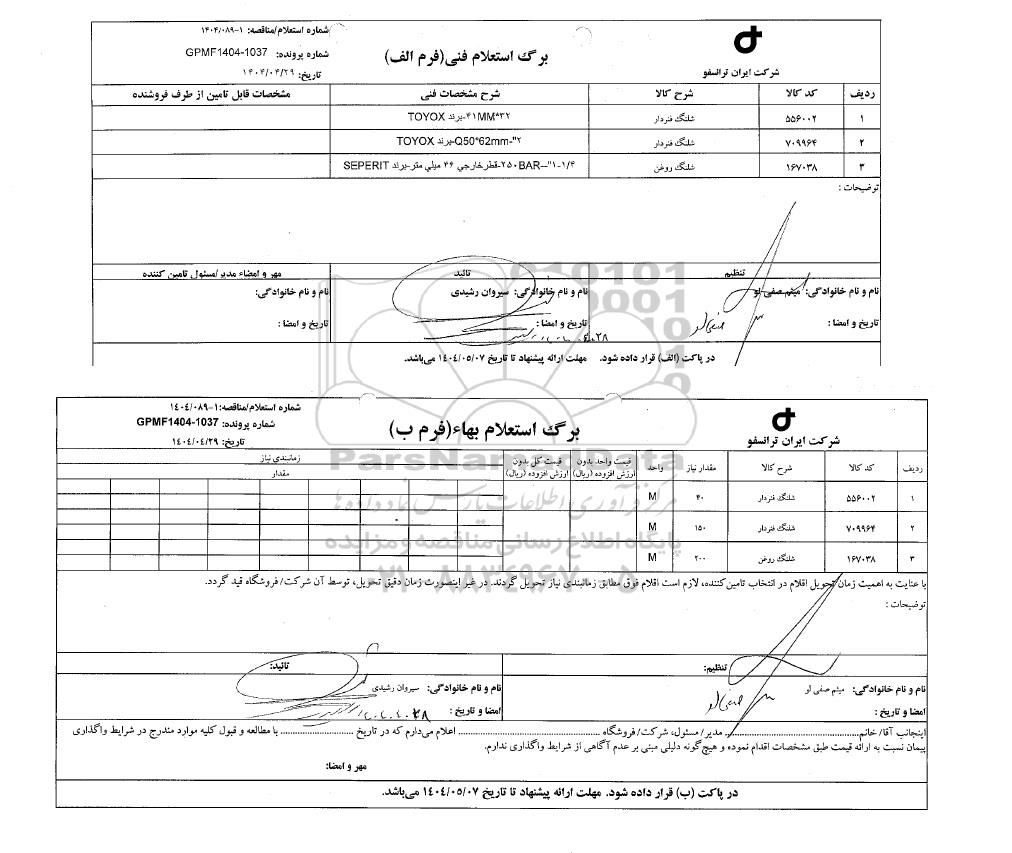 در پاکت (ب) قرار داده شود. مهلت ارایه پیشنهاد تا تاریخ 1404.05.07 می باشد.
