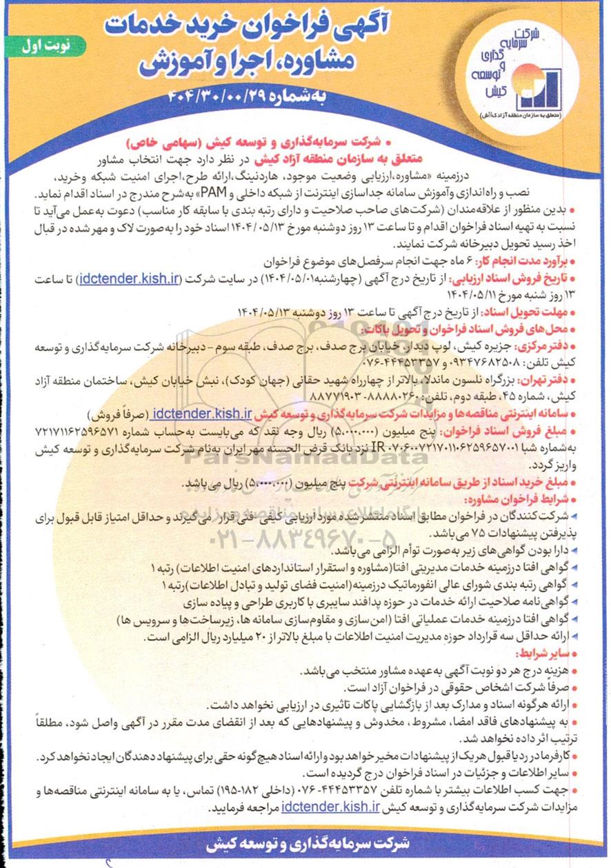 آگهی فراخوان خرید خدمات مشاوره، اجرا و آموزش