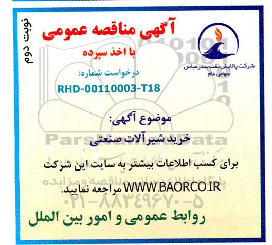 مناقصه شیرآلات نفتی و پالایشگاهی