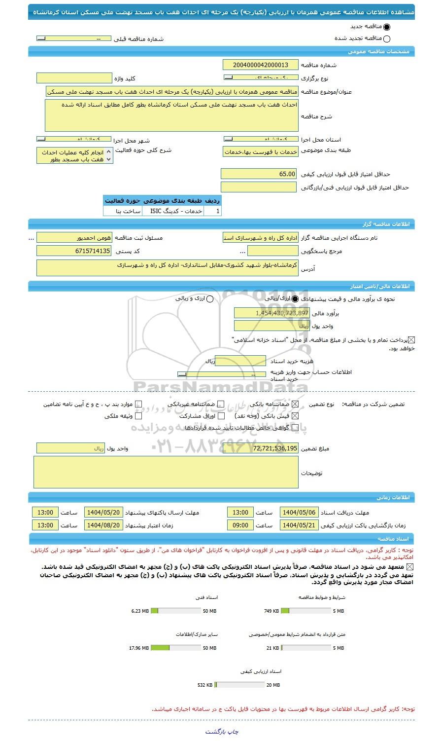 | مبلغ تضمین | 72,721,536,195 | واحد پول | ریال |