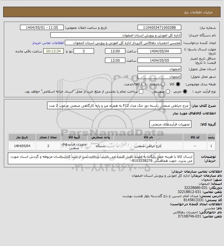 نام دستگاه خریدار:اداره کل اموزش و پرورش استان اصفهان