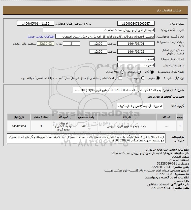 نام دستگاه خریدار:اداره کل اموزش و پرورش استان اصفهان