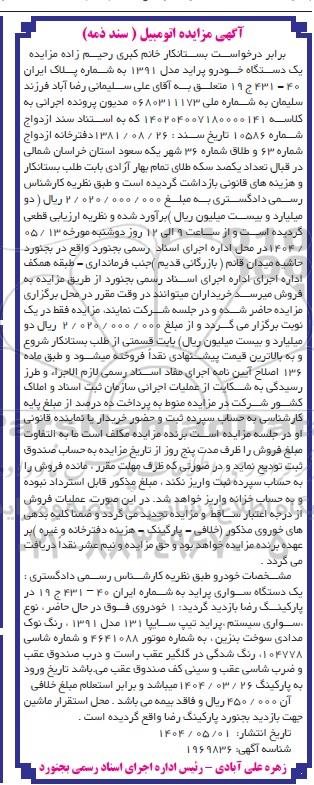 مزایده فروش یک دستگاه خودرو پراید مدل 91 رنگ نوک مدادی , مزایده فروش یک دستگاه خودرو پراید مدل 91 رنگ نوک مدادی