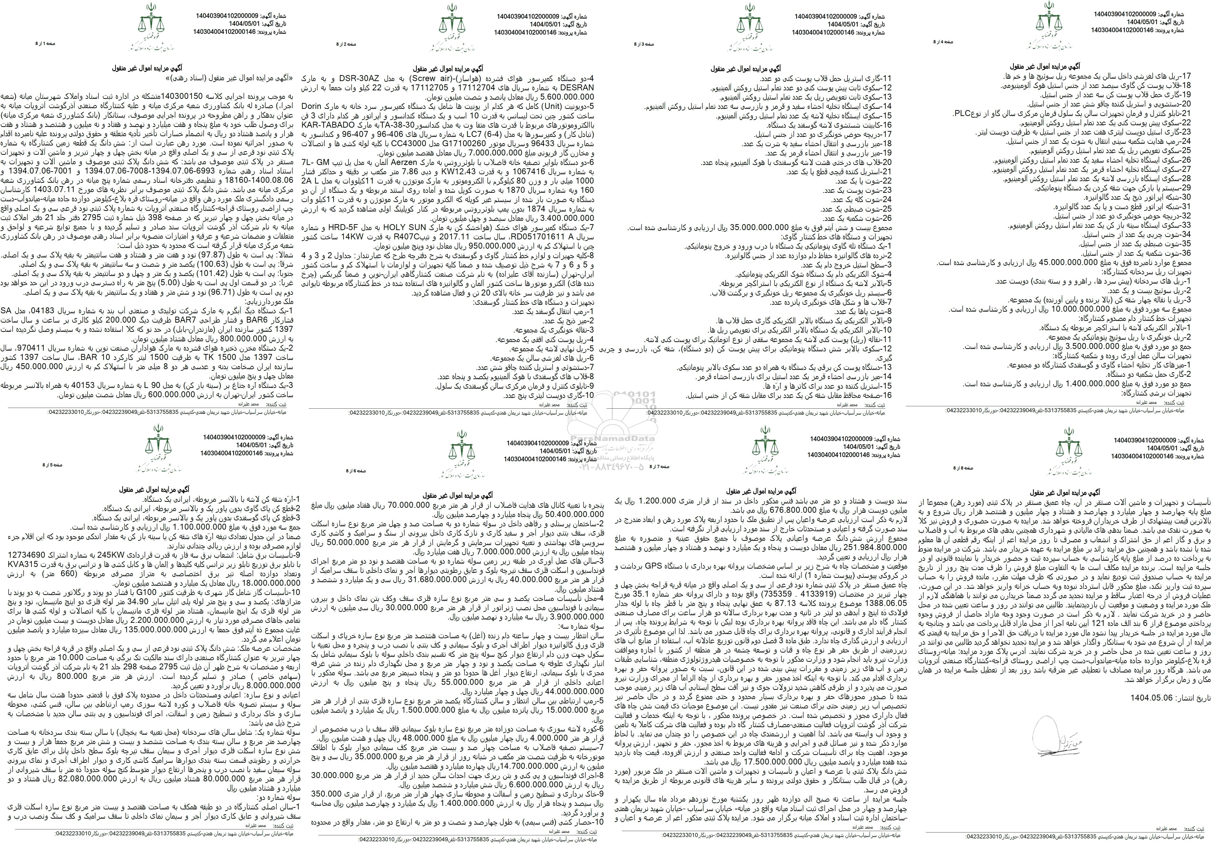 تاریخ مزایده 1404.05.19 ساعت 9 الی 12
