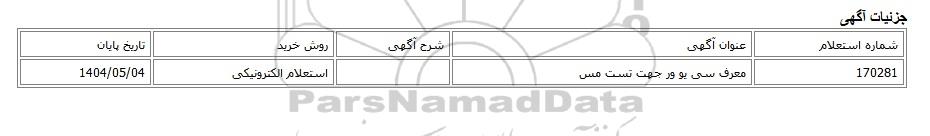 | 170281 | معرف سی یو ور جهت تست مس | استعلام الکترونیکی | 1404/05/04 |