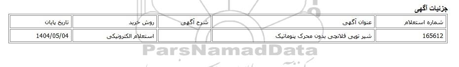 165612شیر توپی فلانچی بدون محرک پنوماتیکاستعلام الکترونیکی1404/05/04