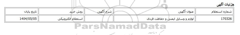 170326لوازم و وسایل ایمنی و حفاظت فردیاستعلام الکترونیکی1404/05/05