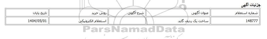 | 148777 | ساخت یک ردیف گاید | استعلام الکترونیکی | 1404/05/01 |