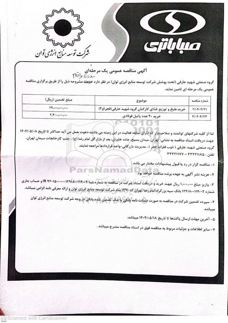 | 2/0404/23 | خرید 20 عدد پاتیل فولادی | 2.300.000.000 |