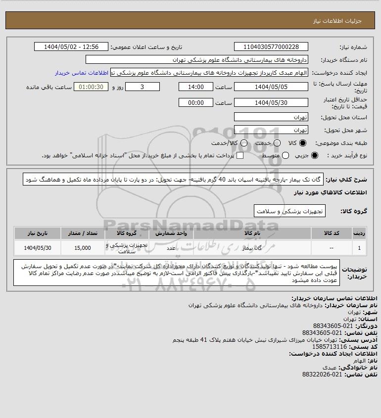 | 1 | -- | گان بیمار | عدد | تجهیزات پزشکی و سلامت | 15,000 | 1404/05/30 |