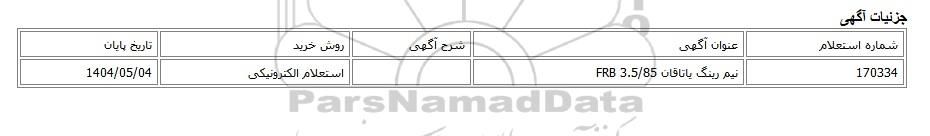 | 170334 | نیم رینگ یاتاقان FRB 3.5/85 | استعلام الکترونیکی | 1404/05/04 |