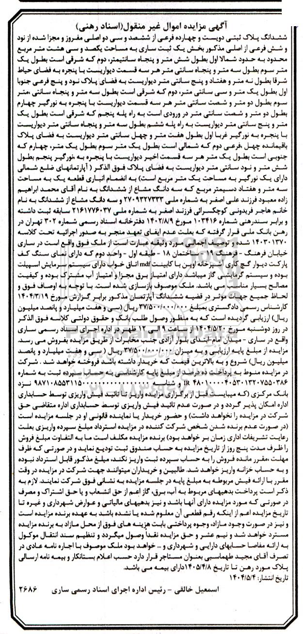 آگهی مزایده اموال غیرمنقول (اسناد رهنی)