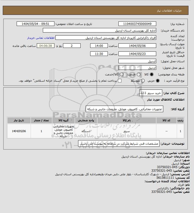 | 1 | -- | سرور | دستگاه | تجهیزات مخابراتی، کامپیوتر، موبایل، ملزومات جانبی و شبکه | 1 | 1404/05/06 |