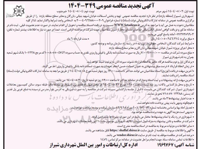 تجدید مناقصه عمومی 349- 1404 ؟ نوبت دوم