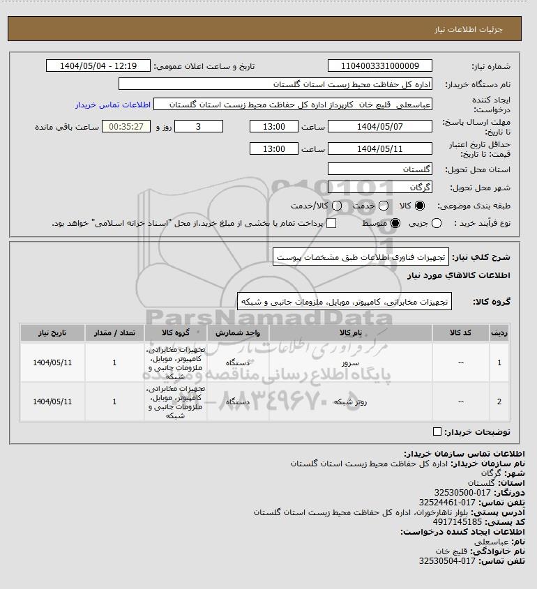 شرح کلی نیاز: تجهیزات فناوری اطلاعات طبق مشخصات پیوست