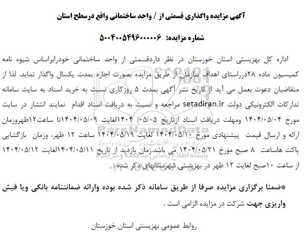 آگهی مزایده واگذاری قسمتی از . واحد ساختمانی واقع در سطح استان ؟