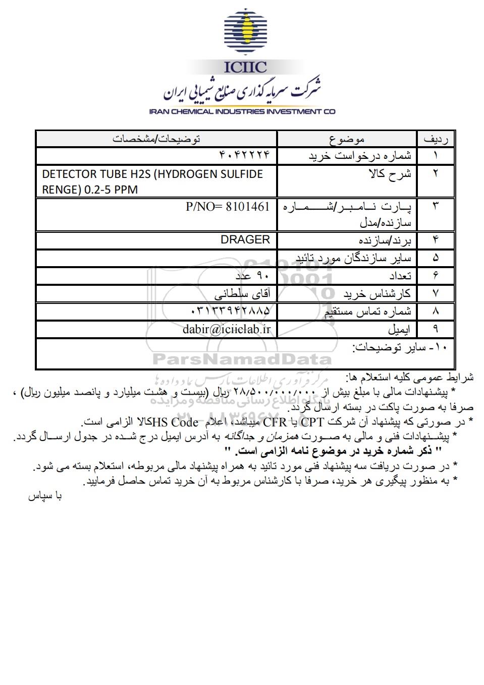 | 2 | شرح کالا | DETECTOR TUBE H2S (HYDROGEN SULFIDE RENGE) 0.2-5 PPM |