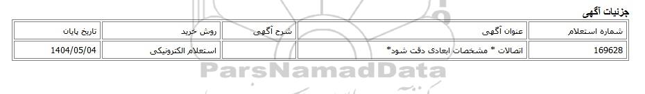 169628اتصالات * مشخصات ابعادی دقت شود*استعلام الکترونیکی1404/05/04
