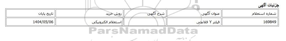 | 169849 | فیلتر Y فلانچی | استعلام الکترونیکی | 1404/05/06 |