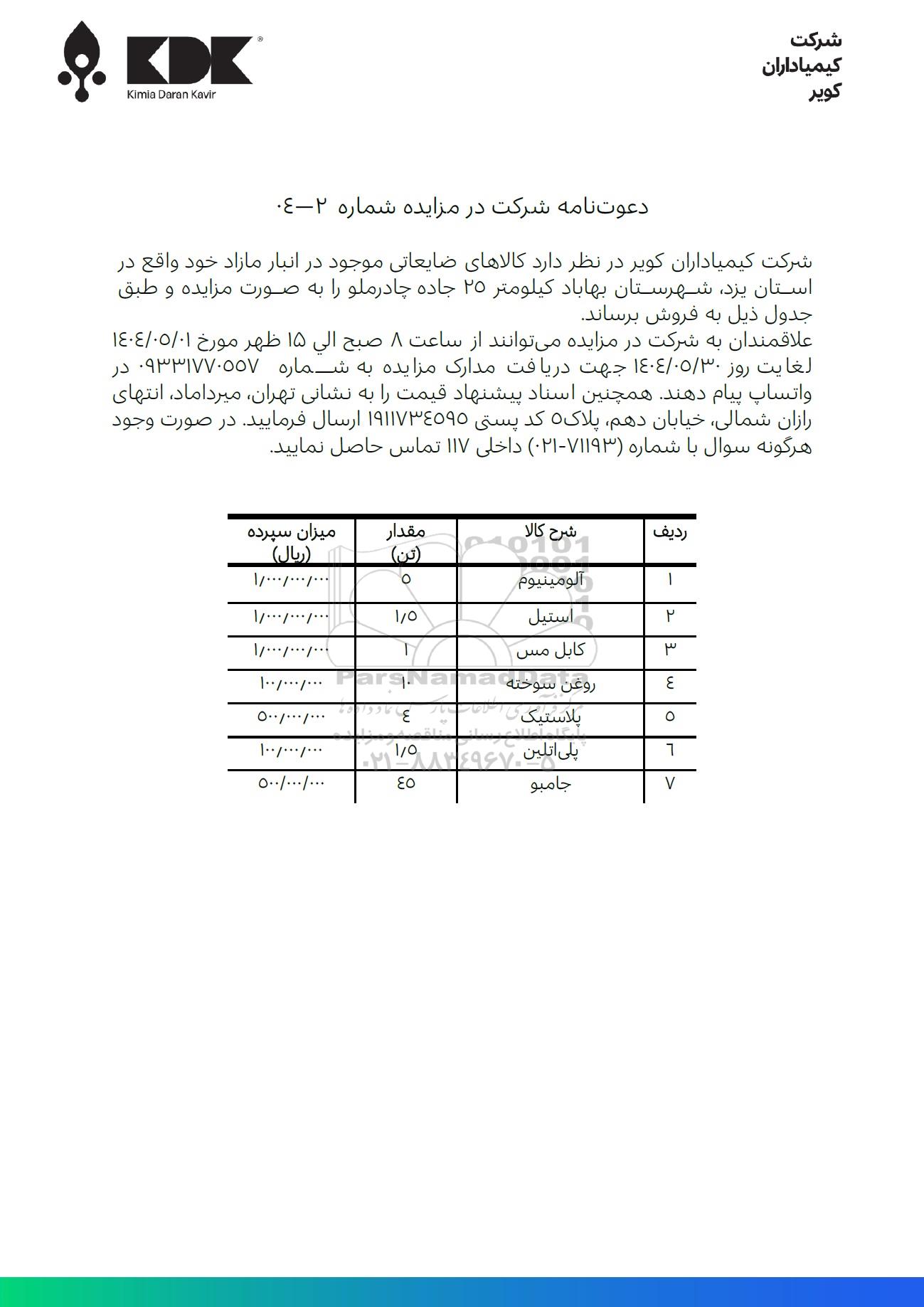 دعوت نامه شرکت در مزایده شماره 2 - 04