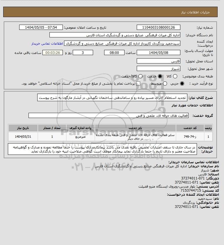 نام سازمان خریدار: اداره کل میراث فرهنگی صنایع دستی و گردشگری استان فارس