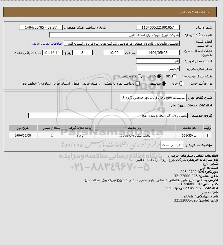 شرح کلی نیاز: سیستم قطع وصل از راه دور صنعتی گروه 3