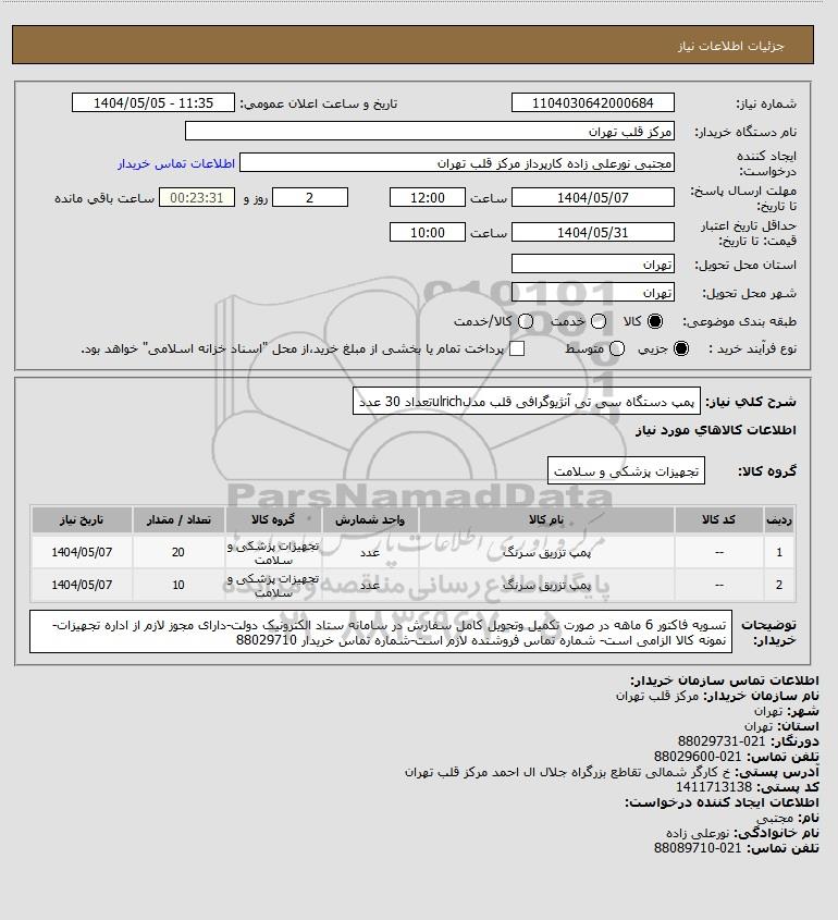 استعلام پمپ دستگاه سی تی آنژیوگرافی قلب مدلulrichتعداد 30 عدد, استعلام پمپ دستگاه سی تی آنژیوگرافی قلب مدلulrichتعداد 30 عدد