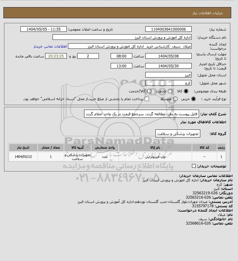 1 -- توپ فیزیوتراپی عدد تجهیزات پزشکی و سلامت 1 1404/05/12