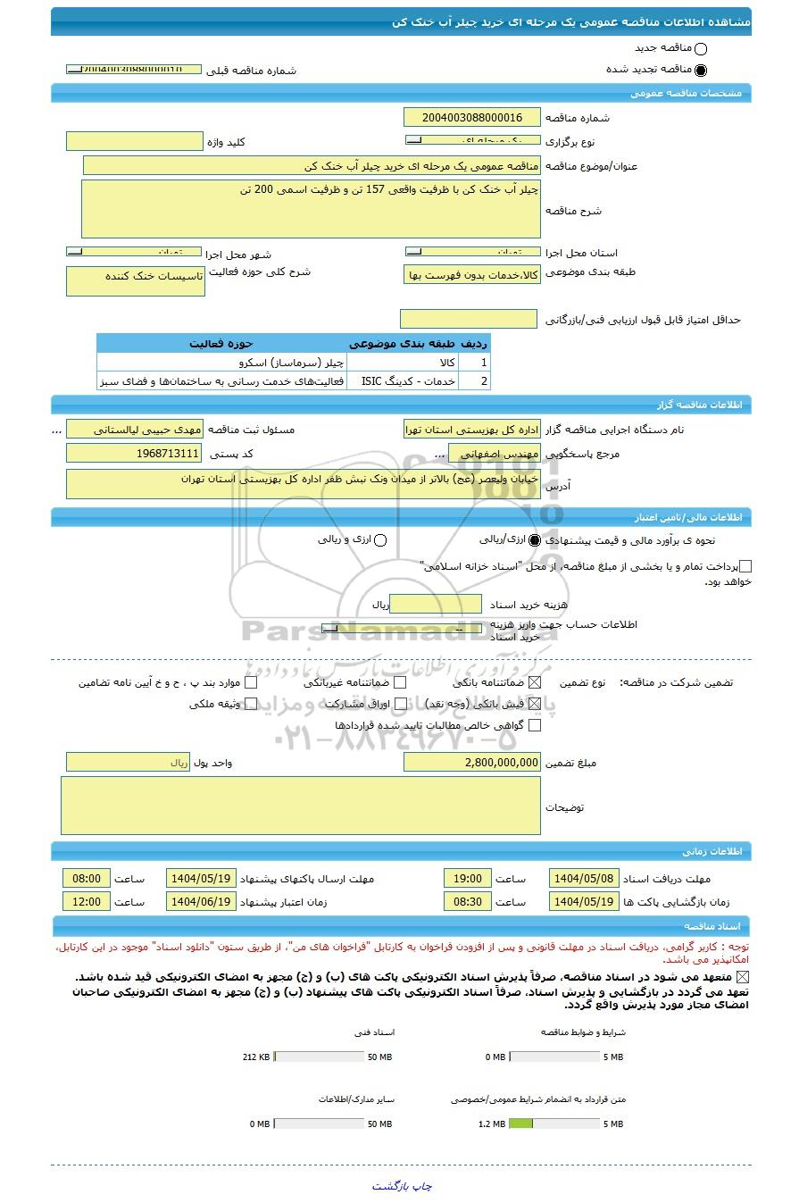 | شماره مناقصه | 2004003088000016 | |||||||||||