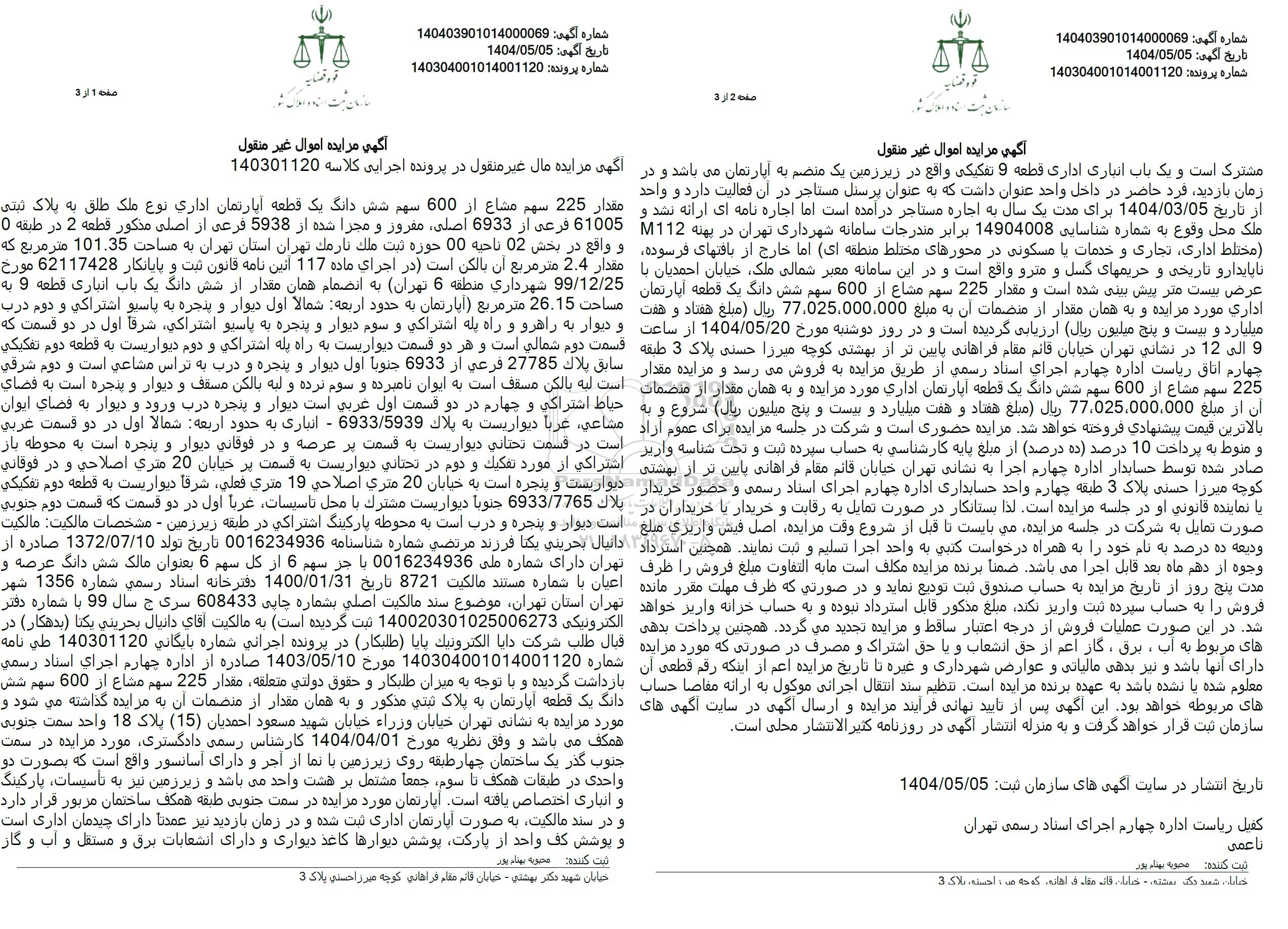 مزایده عمومی مزایده ششدانگ یک قطعه آپارتمان اداری برگزار میگردد. از کلیه افراد متخصص و شرکتهای واجد شرایط دعوت به عمل میآید تا در این مزایده با کد خبرگزاری پارس نماد : 9327159 شرکت نمایند تاریخ شروع مزایده : 1404/05/05 مهلت شرکت در مزایده: تا پایان روز 1404/05/20 مکان برگزاری اموال واگذاری استانهای تهران و دستهبندیهای مربوط به این حراجی املاک و زمین میباشد.