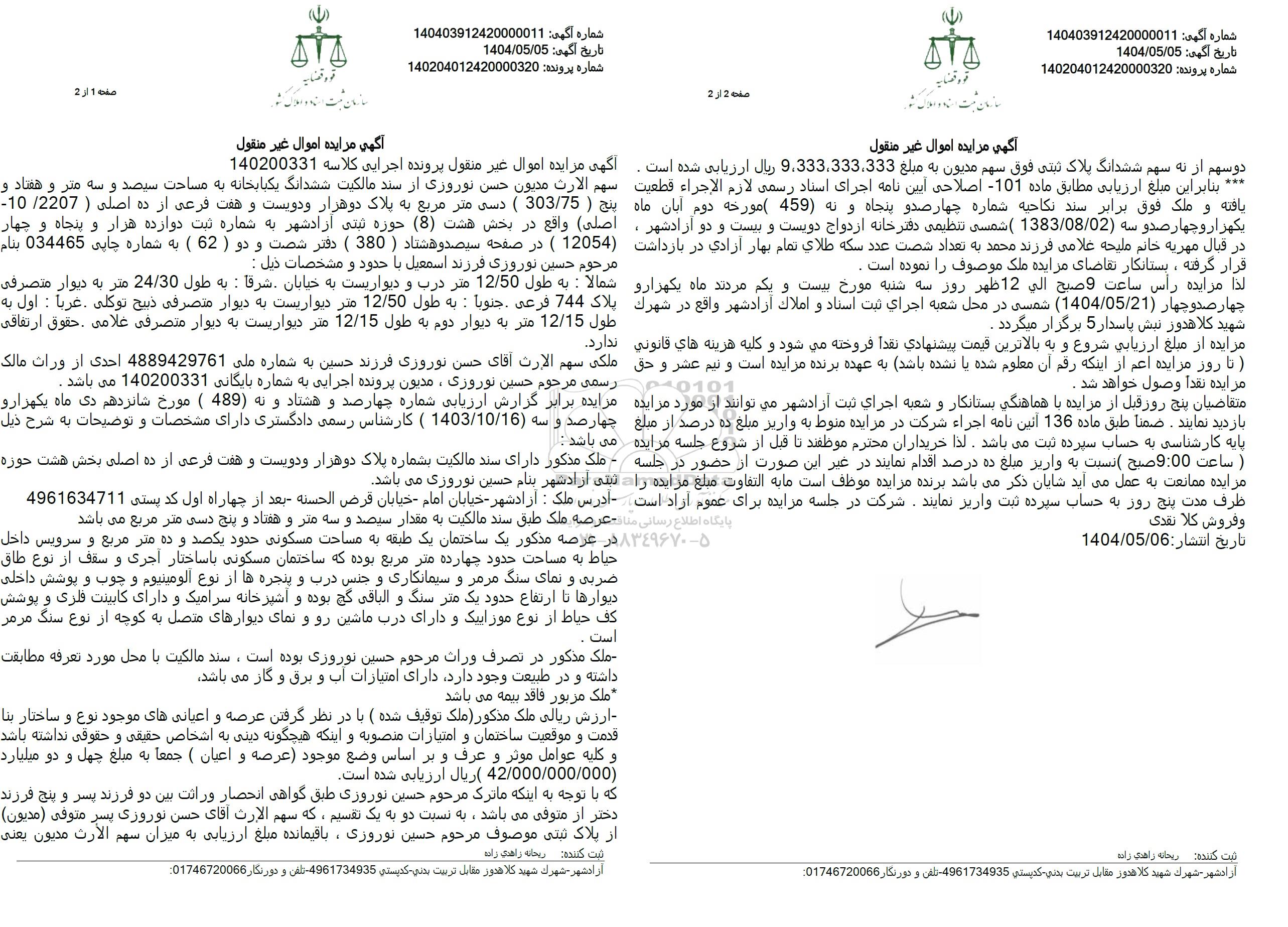 شماره آگهی: 140403912420000011