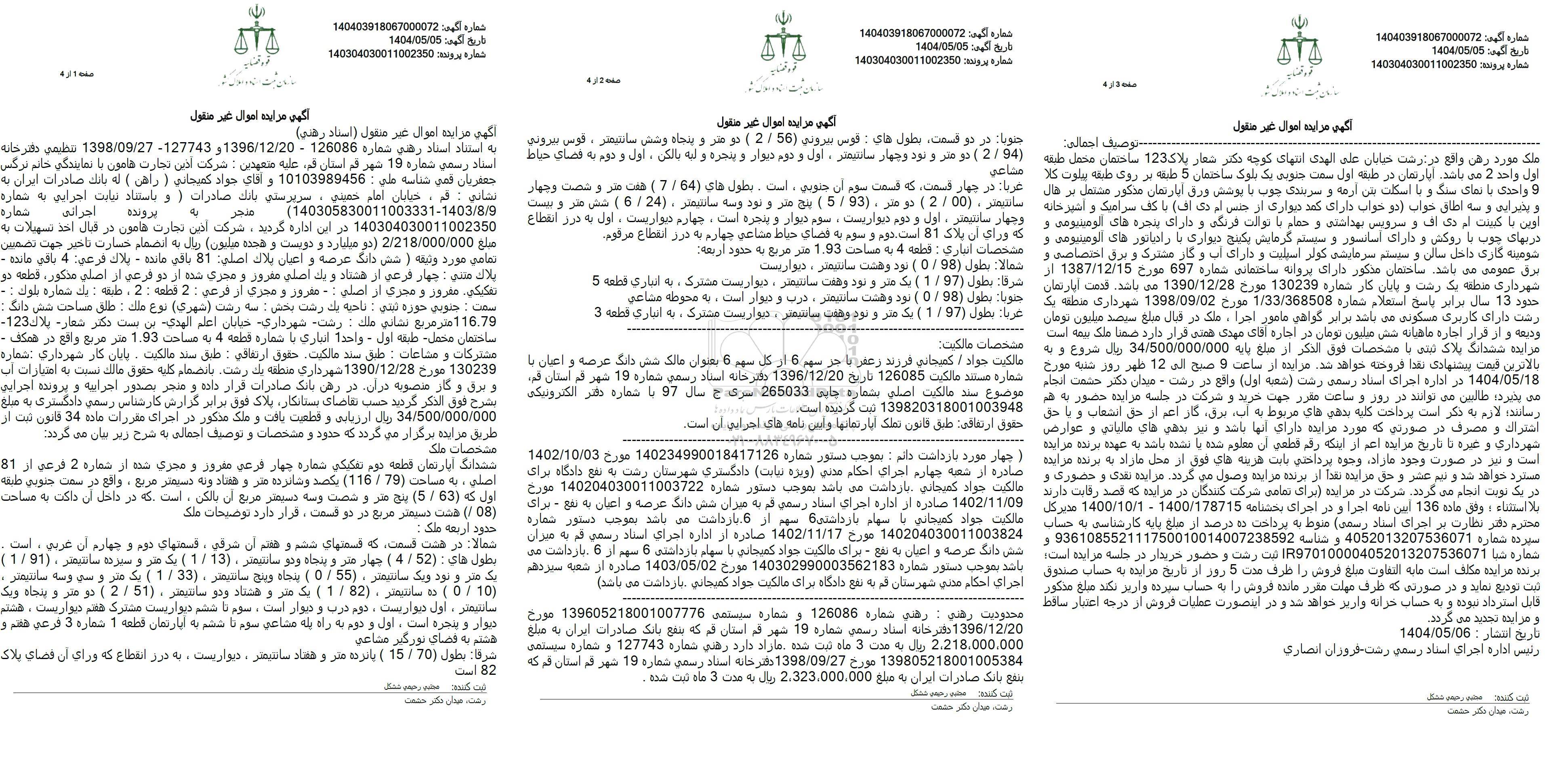 مزایده عمومی مزایده ششدانگ عرصه و اعیان 81 باقی مانده پلاک فرعی 4 برگزار میگردد. از کلیه افراد متخصص و شرکتهای واجد شرایط دعوت به عمل میآید تا در این مزایده با کد خبرگزاری پارس نماد : 9327399 شرکت نمایند تاریخ شروع مزایده : 1404/05/05 مهلت شرکت در مزایده: تا پایان روز 1404/05/18 مکان برگزاری اموال واگذاری استانهای گیلان و دستهبندیهای مربوط به این حراجی املاک و زمین میباشد.