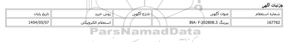 167762بیرینگ INA- F-202808.3استعلام الکترونیکی1404/05/07