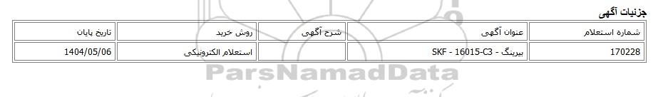 170228بیرینگ - SKF - 16015-C3استعلام الکترونیکی1404/05/06