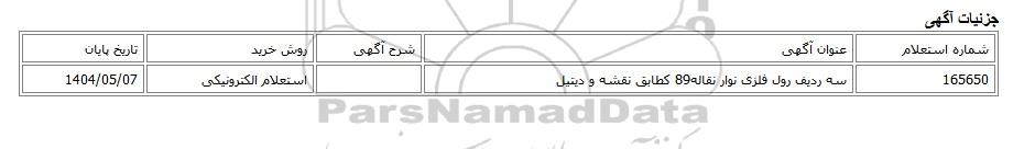 | 165650 | سه ردیف رول فلزی نوار نقاله89 کطابق نقشه و دیتیل | استعلام الکترونیکی | 1404/05/07 |