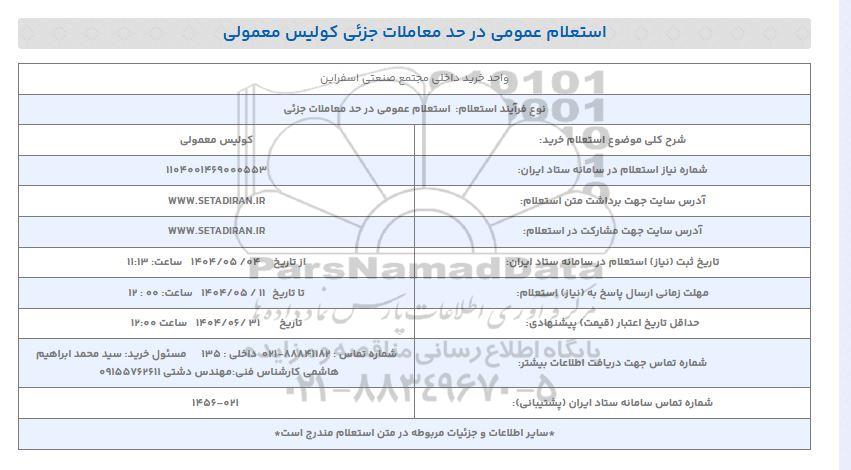 استعلام عمومی در حد معاملات جزئی کولیس معمولی