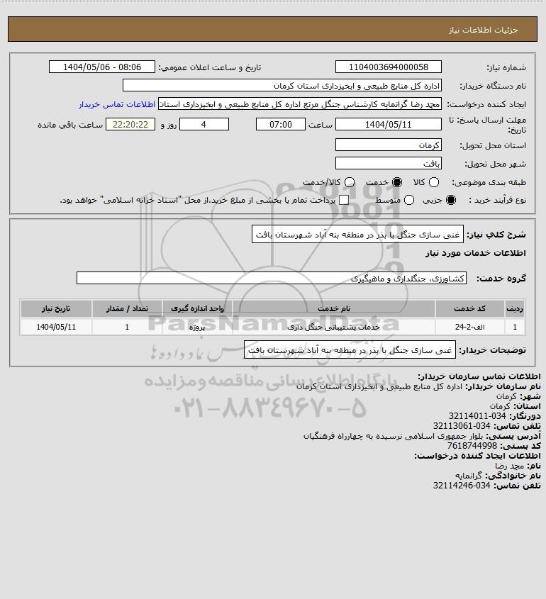 شرح کلی نیاز: غنی سازی جنگل با بذر در منطقه بنه آباد شهرستان بافت