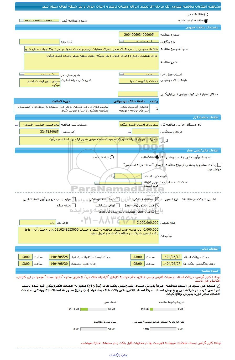 | مبلغ تضمین | 2,000,000,000 | واحد پول | ریال |
