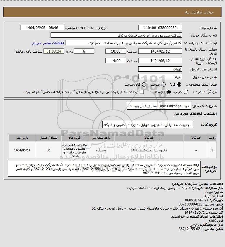 شرح کلی نیاز: خرید Tape Cartridge مطابق فایل پیوست