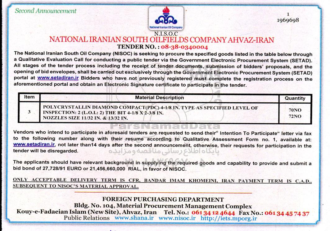 مناقصه POLYCRYSTALLIN DIAMOND COMPACT...نوبت دوم , مناقصه POLYCRYSTALLIN DIAMOND COMPACT... نوبت دوم